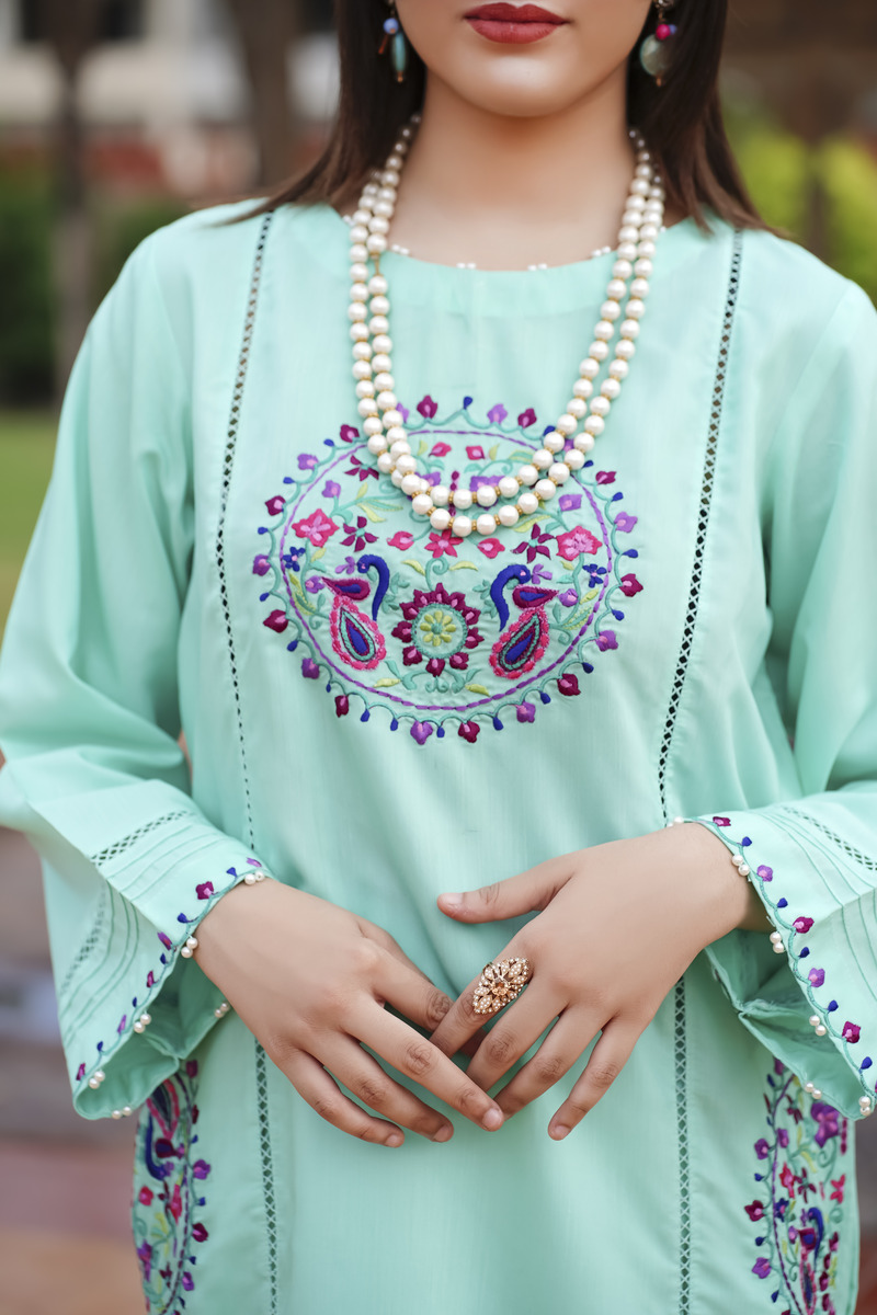 “Embrace the summer heat with this stunning embroidered outfit! Whether you’re going for a casual day out or attending a formal event, this outfit has got you covered. The attention to detail in the stitching is simply outclass! #SummerStyle #EmbroideredBeauty #FashionGoals”
